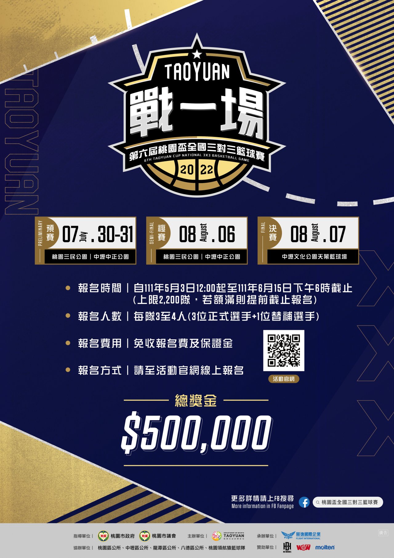 (一) | 預賽: 111 年 7 月 30 、 31 日(六、日),桃園區三民運動公園籃球場、中壢區中正公園籃球場。 |
