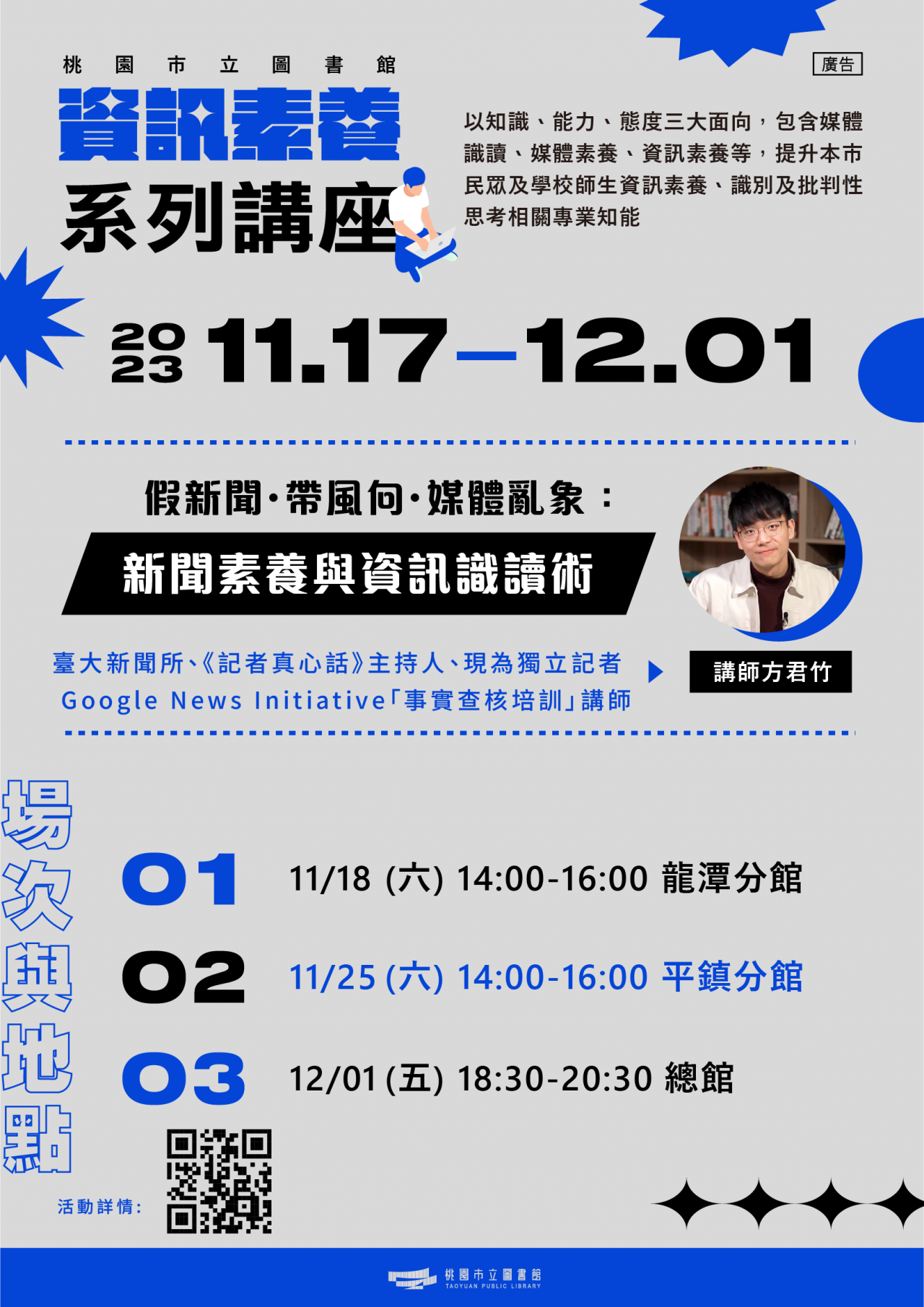 主旨:檢送本館辦理「2023 資訊素養系列講座」海報電子檔,